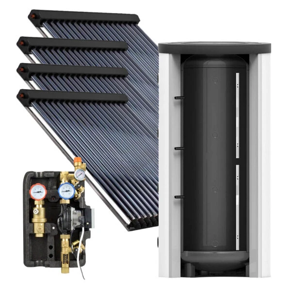 Bei diesem Paket erhalten Sie vier Kollektoren mit je 22 Röhren der neuen Generation der Heat Pipe Technologie. Die neue Generation der Kollektoren arbeitet selbst bei bedecktem Himmel und wandelt Sonnenstrahlen in Wärme um.