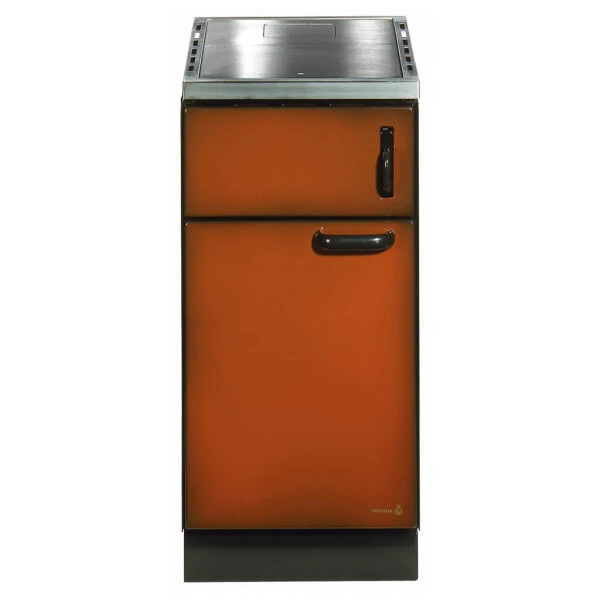 Der Beistellherd Wamsler K140 S maron ist mit einem Herdrahmen aus hochwertigem Edelstahl ausgerüstet. Darin liegt eine Platte aus geschliffenem Stahl. Der Abgas-Anschluss mit 120 mm Durchmesser kann sowohl zu beiden Seiten, als auch oben an der Rückseite erfolgen. Insgesamt weist die Zusatzkochstelle Maße von 850 x 400 x 600 mm (HxBxT) auf. Emailliert ist der Wamsler K140 S in rustikal nostalgischem maron. Durch Drehen können Sie die Füße um 5 cm in ihrer Höhe verstellen und so perfekt in Ihre Küche einpassen.