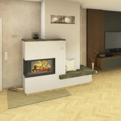 Das BRULA Design 17 vereint den großen Feuerraum Typ D plus und eine modern gestaltete Anlage. In diesem Modell ist die Sitzbank nicht beheizt, das liegende Zugsystem wird aber als beheizte Rückwand ausgeführt. Diese beheizt den Nachbarraum, so das wir bei diesem Modell eine stündliche Wärmeabgabe von 4,5 kW für beide Räume haben.