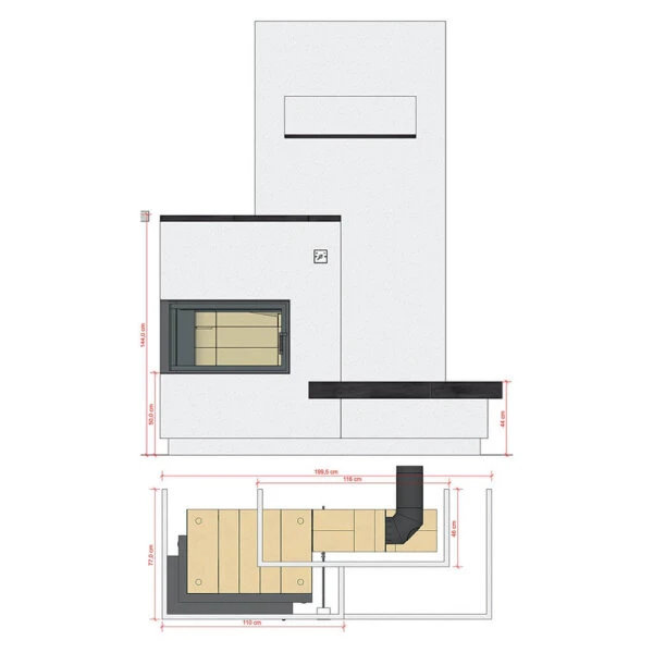 - Mantel: Sockelbereich aus Brulapor-Elementen, Mantel und Decke aus Brula-Wärmespeicherplatten (optional auch mit GSL Kaminbauplatten oder Waffelsteinen möglich), Putzkapseln für die Reinigung, Brula Ofenweißputz 1 mm