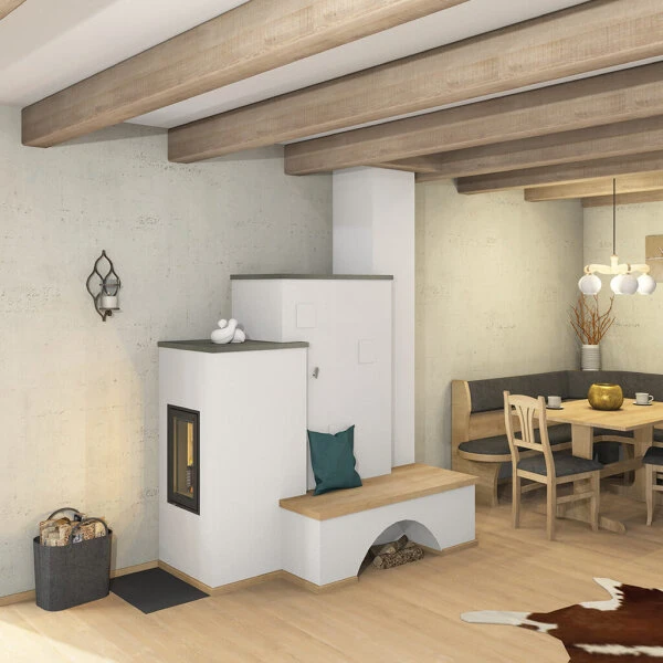 - Mantel: Sockelbereich aus Brulapor-Elementen, Mantel und Decke aus Brula-Wärmespeicherplatten (optinal auch mit GSL Kaminbauplatten oder Waffelsteinen möglich), Putzkapseln für die Reinigung, Brula Ofenweißputz 1 mm