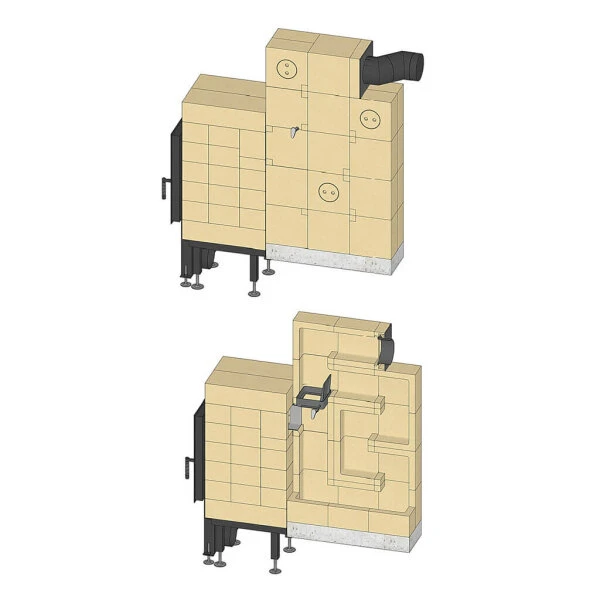 Brandschutz, Kaminzug und eine sichere Funktionsweise sind durch einen Fachmann zu gewährleisten! Der Aufbau dieses Ofens hat nach den Fachregeln des Kachelofen- und Luftheizungsbaus (TROL) zu erfolgen! Bypass oder Gasschlitz sind handwerklich in das Zugsystem einzuarbeiten.