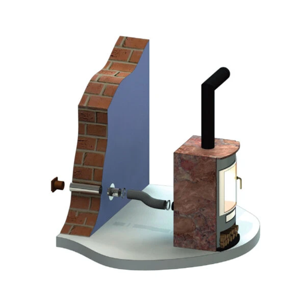 Das einwandige Zuluftsystem ermöglicht die zuverlässige Zufuhr von Verbrennungsluft für raumluftunabhängige Kaminöfen. So bleibt die Raumluft unangetastet. Das Zuluftsystem besteht aus einem Aluflexschlauch, Edelstahlrohr, Drosselklappe, Lüftungsgitter und zwei Schlauchschellen. Eine integrierte Zuluftklappe sorgt dafür, dass bei Nichtbetrieb keine kalte Luft zirkuliert.