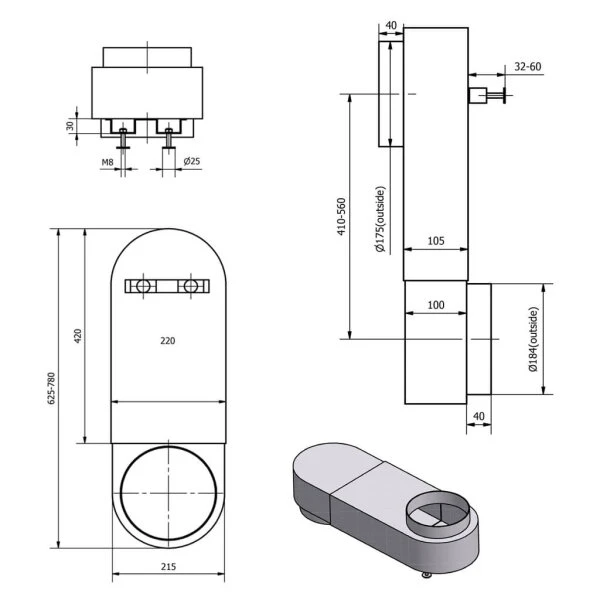 Anschlüsse: 2 x Ø 180 mm