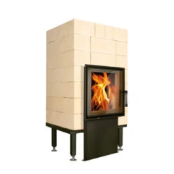 Der Brula Grundofen Typ C Plus ist ein Komplett-Feuerraum inklusive Grundofentür GT-A05 Mod. 2016 mit Smart Close Mechanismus und dem Podest C Plus. Der Feuerraum hat die Maße 625 x 500 x 875 mm (B x T x H) und kommt auf ein Gewicht von 325 kg. Das Zargenmaß der Tür beträgt 460 x 460 mm (B x H). Zusätzlich zu dem Feuerraum ist in dem Lieferumfang des Speicherofens ein Verbrennungsluft-Anschluss mit 150 mm Durchmesser, ein Verbrennungsluft-Schieber, ein Klammerset, Einlagekeile und BRULA Aufbaumörtel enthalten. Es wir pro Feuerraum ein Ausbrand-Set mitgeliefert, welches zur Seite oder nach hinten angebracht werden kann und den Übergang zur Nachheizfläche bildet. Dieses Ausbrand-Set ist quadratisch, 17,5 x 17,5 cm groß und genau auf die Modulzugsteine angepasst. Der Zuschnitt der Türaussparung in den Speichersteinen ist ebenfalls inklusive.