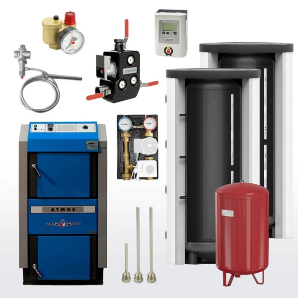 Wir haben für Sie ein wasserführendes Set mit dem Holzvergaser DC 30 GSE der Firma Atmos zusammen gestellt. Es besteht aus den folgenden Komponenten: