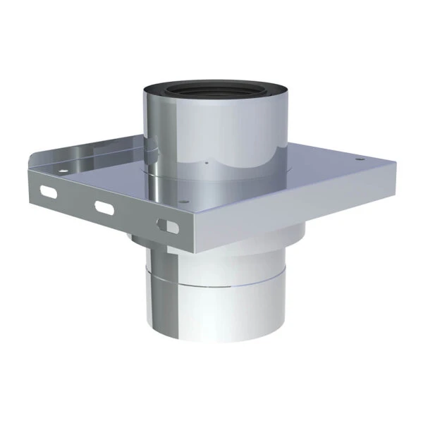 Mithilfe der Jeremias TWIN P Grundplatte für Zwischenstütze mit Zuluftansaugung wird die Stabilität ihres Abgas-Rohrsystems erhöht. Dieses Bauteil wird benötigt um eine sichere und zuverlässige Montage des Systems zu gewährleisten, z.B. wenn das Schornsteinrohr einen Knick macht. Durch die integrierte Zuluftansaugung wird die Funktionalität des raumluftunabhängigen Systems gesichert. Das Element besteht aus hochwertigem Polypropylen (innen) und Edelstahl (außen) und ist für Temperaturen bis 120°C geeignet. Die Grundplatte ist für folgende Schornstein-Innendurchmesser erhältlich: 60/100, 80/125, 100/150, 110/160, 125/190, 160/230, 200/265 und 250/315 mm.