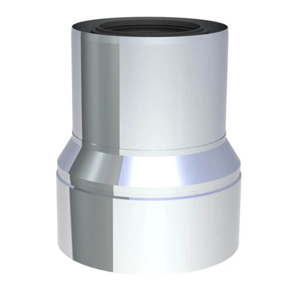 Die Jeremias TWIN P Reduzierung konzentrisch wird verwendet, um einen Durchmesserunterschied zu überbrücken, wenn die Anschlüsse des Kaminofens und des Schornsteins nicht zueinanderpassen. Die Reduzierung besteht aus hochwertigem Polypropylen und Edelstahl und ist für Temperaturen bis zu 120°C zulässig. Sie ist für folgende Kessel/Schornstein-Innendurchmesser erhältlich: 80-125/60, 100-150/60, 100-150/80, 110-160/60, 110-160/80 und 110-160/100 mm.