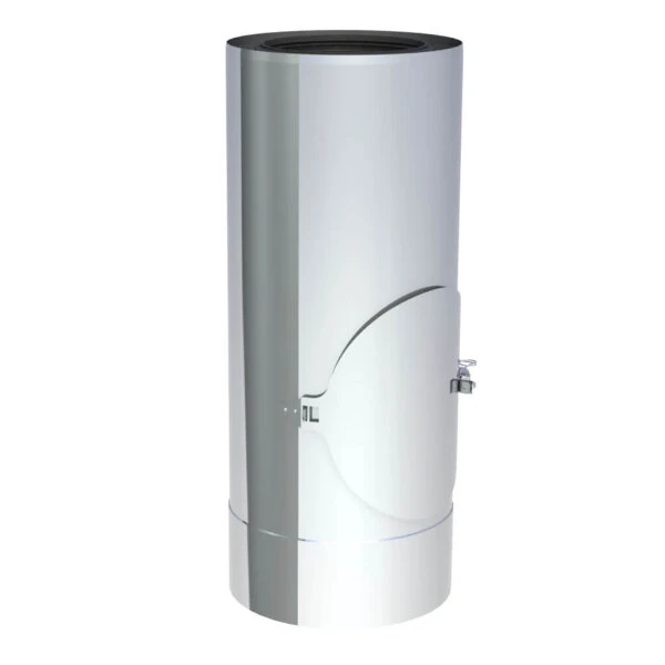 Das Jeremias TWIN P Reinigungselement besitzt einen großen Zugang zum Inneren des Schornsteinrohres und ermöglicht somit eine einfache Reinigung und Wartung des Systems. Bestehend aus hochwertigem Polypropylen (innen) und Edelstahl (außen) is das Bauteil für bis zu 120° C zulässig. Es ist für folgende Schornstein-Innendurchmesser erhältlich: 60/100, 80/125, 100/150, und 110/160 mm.