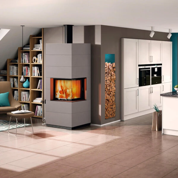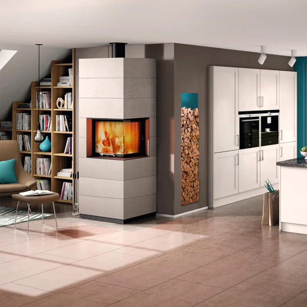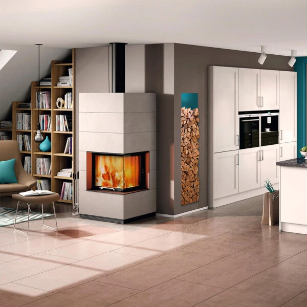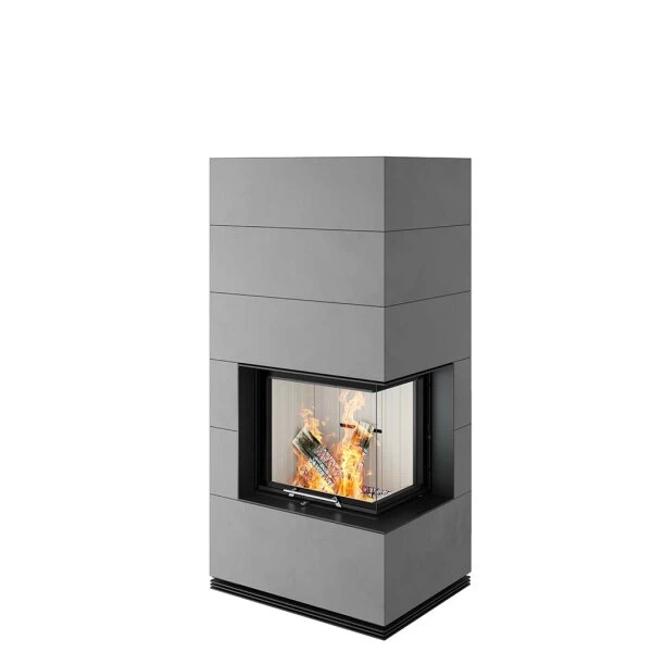 Die Verwendung der schlichten aber eleganten Betonverkleidung hat nicht nur optische, sondern auch technische Vorteile. So speichert der spezielle Wärmebeton die abgegebene Wärme und gibt diese zeitverzögert wieder ab. So wird der Aufstellraum vor einer schnellen Überhitzung geschützt und die angenehme Strahlungswärme heizt noch lange nach dem Erlöschen der Flamme. Das Modell Spartherm Varia 2R-55h bietet Ihnen eine moderne, zeitlose und ganz individuelle Kaminlösung mit einer Eckscheibe und bringt Wärme und gemütlichen Feuerschein in Ihr Zuhause.