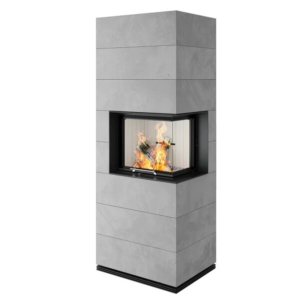 Elegant und mit einer großen Gestaltungsvielfalt passt sich der Kamin sehr angenehm in Ihre Räumlichkeiten ein, bietet dabei aber stets einen ungestörten und großzügigen Einblick in das Herz der Kaminanlage. Die große Eckscheibe (58/39 cm x 51 cm, BxH )bietet bei diesem Modell freie Sicht von gleich zwei Seiten auf das wohlige Feuer.