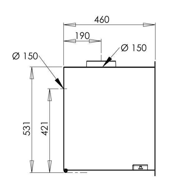 - Durchmesser Rauchrohranschluss: 150 mm (oben/hinten)