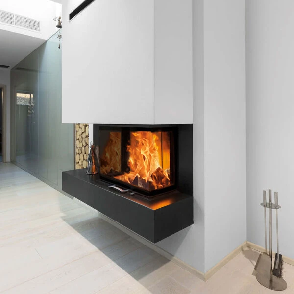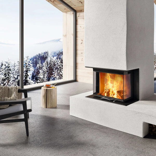 Der Kamineinsatz Austroflamm 64 S3 2.0 überzeugt mit seiner großen Panoramascheibe in U-Form, durch welche das Feuer rundum eingesehen werden kann. Die hohe Nennwärmeleistung von 10 kW macht diesen Einsatz zur optimalen Wärmequelle in offenen Wohnbereichen. Das dreiseitige Modell eignet sich wunderbar als Raumteiler und ist die ideale Bühne für ein wärmendes Feuer. Das Feuer ist rundherum einsehbar und spendet wohltuende Strahlungswärme.