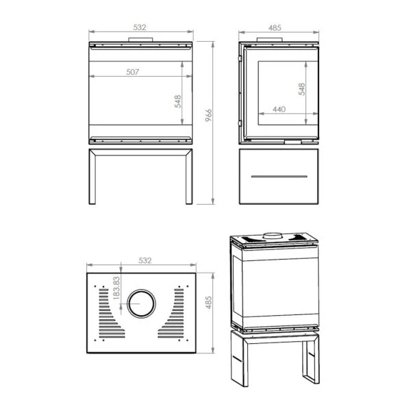- Abstand zu brennbaren Bauteilen hinten/seitlich: 25 / 80 cm