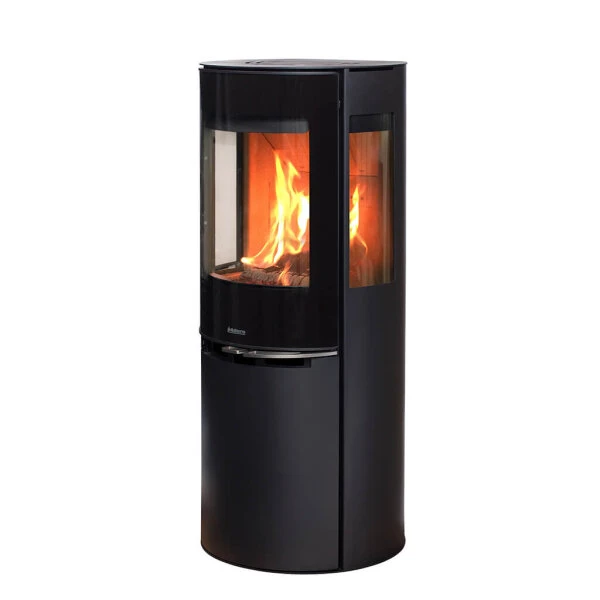 Der Kaminofen Aduro 9-5 Lux Air macht, wie der Name schon sagt, Licht und Luft. Licht, das heißt Feuerschein, wird durch eine dreiseitige Verglasung in den Raum gebracht, Luft über den Außenanschluss, welcher den Sauerstoff aus einem Nebenzimmer oder von draußen direkt zum Abbrand befördert. Aduro hat diesen Kaminofen extra hoch konzipiert, damit Sie ihn ganz bequem bedienen können. Außerdem rückt auf diese Weise die Brennkammer besser ins Blickfeld. Die schlanke runde Form macht den Kaminofen Aduro 9-5 Lux Air zu einer platzsparenden und eleganten Heizstätte, die keinesfalls wuchtig wirkt.