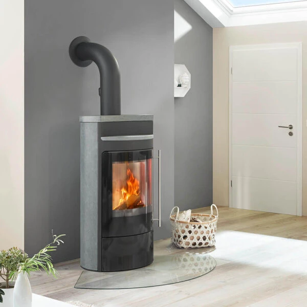 Der Kaminofen Olsberg Tecapa II Compact ist mit einer Nennwärmeleistung von 6 kW für kleinere bis mittlere Räume konzipiert. Dank eines Wirkungsgrades von über 80 % arbeitet er jedoch extrem effizient und schont Umwelt und Geldbeutel gleichermaßen. Der Brennraum ist mit äußerst hitzebeständiger Schamotte ausgekleidet, die durch intelligente Profilierung sehr hohe Abbrandtemperaturen zulässt und dabei besonders hitzebeständig ist. Die Wirbelbrennkammer sorgt zudem für eine optimale Vermischung der Verbrennungsluft mit den Heizgasen, was Emissionen und Feinstaubpartikel verringert. Dank des patentierten Türschließmechanismus ist der Betrieb zertifiziert raumluftunabhängig. Zum Reinigen wird die Tür arretiert, im normalen Betrieb schließt sie dicht und geräuschlos. Da der Türgriff belüftet wird, kann er auch nach Stunden des Betriebs problemlos ohne Handschuhe betätigt werden. Der Kaminofen Olsberg Tecapa II Compact wiegt bei einer Höhe von 1253 mm, einer Breite von 611 mm und einer Tiefe von 476 mm 190 kg (Keramik-Verkleidung), bzw. 225 kg (Naturstein).