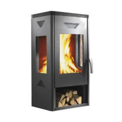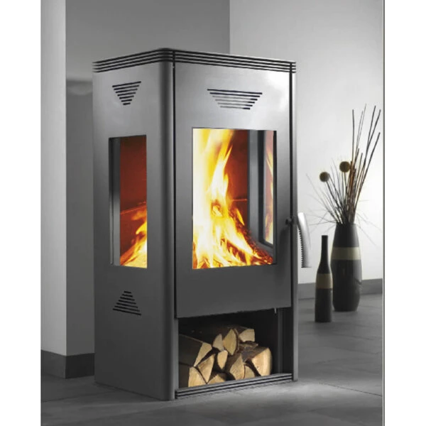 Mit seinem schlichten aber eleganten Design wird er mit Sicherheit zum Mittelpunkt eines jeden Wohnraumes, denn auch die geraden Robax-Scheiben garantieren eine ideale Wärmeabgabe an Ihren Räumlichkeiten. Auch mit der Reinigung der drei Scheiben kommen keinerlei Probleme auf, denn durch das Spülluftsystem wird Ihnen nie ein Blick auf das Feuerspektakel verwehrt. Die verzinkte Aschelade dient zusätzlich dem einfachen Entfernen von Asche und verbrannten Resten. Doch ebenso der geräumige Brennraum, welcher mit Qualitäts-Vermiculite verkleidet ist, wird zum echten Qualitätsmerkmal des Kaminofens, denn dies kommt vor allem der Umwelt zu Gute, indem dank ihm nur geringste Schadstoffemissionen erzielt werden. Außerdem können mit Vermiculite beste Wirkungsgrade erreichen werden.
