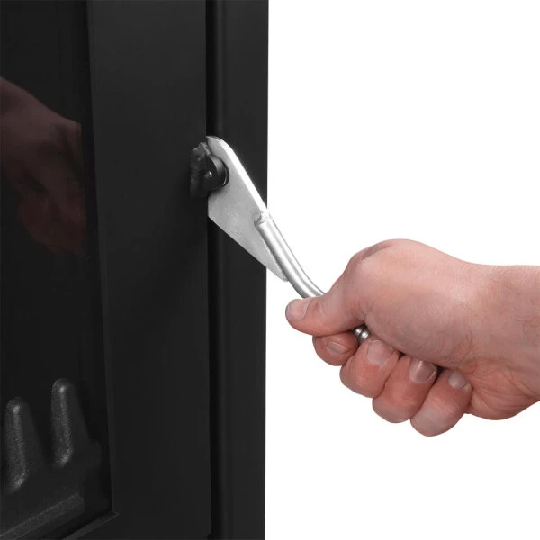 Der Kaminofen Marbella verfügt über eine selbstschließende Tür und lässt damit eine Mehrfachbelegung des Schornsteins zu.