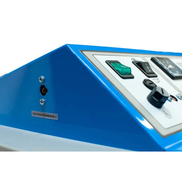 Damit die Rauchgase ordentlich abziehen können, ist der Atmos Kombikessel DC 30 GSP, wie jeder andere Holzvergaserkessel von Atmos, mit einem Abzugsventilator ausgestattet. Dieser hat die Aufgabe einen Unterdruck im Kessel zu erzeugen, damit die Vergaserflamme entstehen kann. Zum anderen werden die Abgase über die Anheizklappe bei geöffneter oberen Tür nach hinten abgezogen.