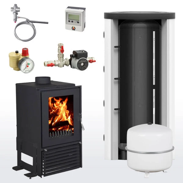 Komplettset Wasserführender Kamineinsatz Malaga I CS + 500 Pufferspeicher