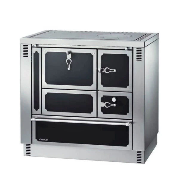 Doch auch seine Konstruktionsweise ist genauso praktikabel wie optisch ansprechend. Zunächst haben Sie noch die Wahl nebst unterer Edelstahl-Herdstange eine weitere obige Herdstange mit an den Herd anfügen zu lassen. Auch lässt sich der Herd durch die an beiden Seiten angebrachten Brandschutzeinheiten nahtlos in eine Küchenzeile integrieren. Ebenso ist der Ofen je nach Ihren Wünschen auch in einer Sonderhöhe lieferbar bzw. einstellbar. Sein äußeres Antlitz wird schließlich durch seine einfach zu pflegende Edelstahl-Verkleidung mit schwarzen Einsätzen im schlichten Jugendstil komplimentiert.