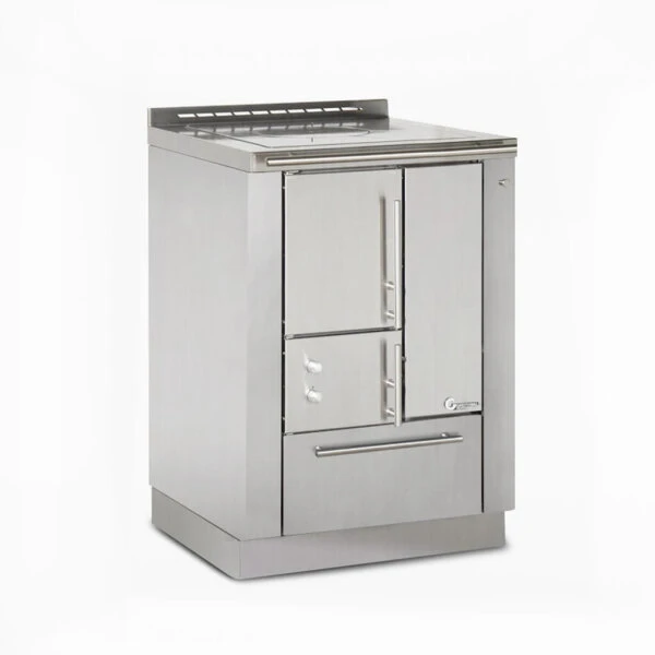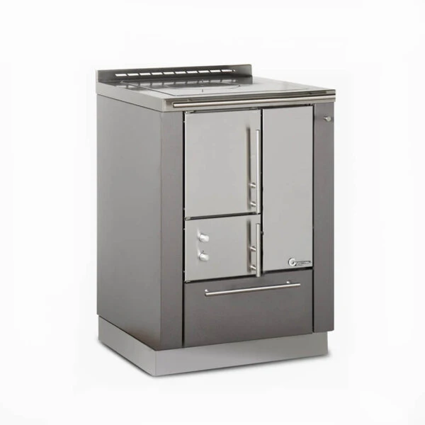 Bei dem Küchenofen Öko Power 60 sf setzt die Firma Greithwald auf schlichte und klare Formen. Die Ausführungen Edelstahl, Sandstein, Antikschwarz und Anthrazit basieren alle auf einem rechteckigen 60 x 60 cm großen Grundriss und glatten Oberflächen, welche leicht zu reinigen sind. Alle Griffe sind aus Edelstahl und können einhändig bedient werden. Mit einer Leistung von 6,4 kW heizt er ohne Mühe Räume bis 182 m³ Volumen. Mit der Kombination aus einem Wirkungsgrad von 80,7% und den modernen Schamottsteinen können Sie den Ofen sowohl für schnelle Hitze als auch für langanhaltendes Warmhalten Ihrer Mahlzeit nutzen. Ein wichtiger Punkt für dauerhafte Wärmespeicherung ist die Möglichkeit Primär- und Sekundärluft abzustellen, was bei diesem Ofen standardmäßig verbaut wurde.