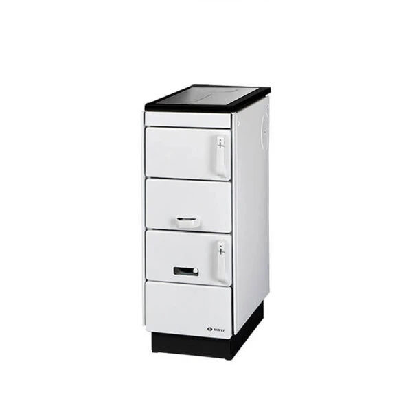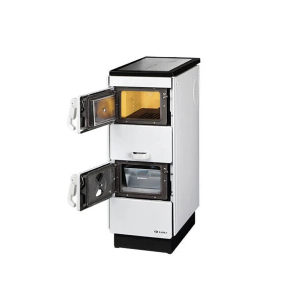 Der Küchenofen HKK 32/60 verfügt auf der Oberseite über eine geschliffene Stahlkochplatte. Der Küchenofen HKK 32/60 ist in zwei Varianten erhältlich. Zur Auswahl stehen Weiß und Schwarz. Der Holzherd ist mit zwei Rosten ausgerüstet. Der obere, fest eingelegte Sommer-Rost zur Flachfeuerung optimiert den Brennstoffverbrauch in den Sommermonaten. Der untere hingegen ist rüttelbar, was die Reinigung enorm erleichtert. Für den Winterbetrieb muss der obere Rost nur herausgenommen werden, um die Füllschachtfeuerung zu ermöglichen. Der Abbrand kann dabei entspannt durch die Regulierung der Luftzufuhr kontrolliert werden. Die dabei entstehenden Abgase finden ihren Ausweg durch den 120 mm breiten Rauchrohranschluss.