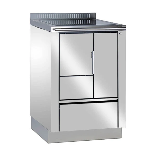 Wenn Sie die Wärme eines Ofens, die beim Kochen entsteht, für die Raumtemperatur nutzen möchten und sich so auf die Kraft des Feuers besinnen, ist der Küchenofen Tyrola TR_A 60 genau das Richtige für Sie. Der Küchenofen aus hochwertigem Edelstahl ist für das Kochen mit einem Holzfeuer konzipiert sowie für das Heizen Ihrer Küche geeignet und somit ein echter Allrounder. Weil dem noch nicht genug ist, werden die Kochfelder des Küchenofen Tyrola TR_A 60 schnell warm und behalten Ihre Wärme. Dadurch können Sie Ihre Gerichte wunderbar warm halten, ohne zusätzliche Energie zu verbraten.