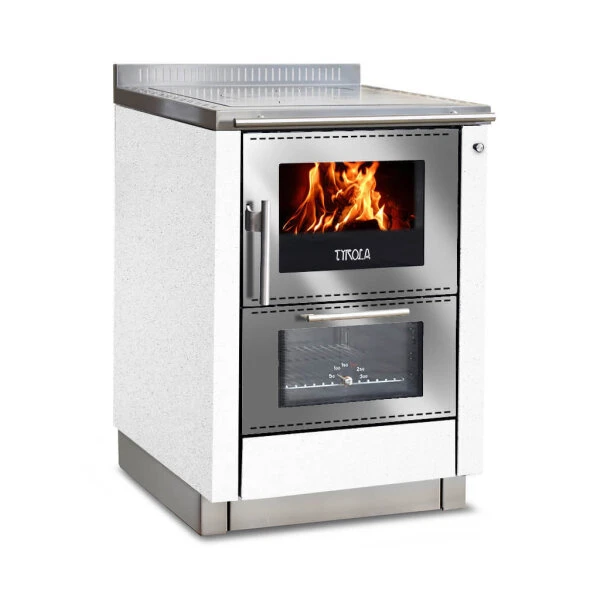Die herausragendste Eigenschaft des Küchenofens Tyrola TR_F 60 ist der vergleichsweise hohe Anteil an Schamottsteinen, wodurch der hohe Wirkungsgrad sowie Brennraumtemperaturen von bis zu knackigen 800 °C erreicht werden. Durch die hohen Temperaturen wird zudem die Verbrennung effizienter gestaltet. Rückstände von Asche und Ruß werden reduziert, der Holzverbrauch und die Abgaswerte sinken. Der Küchenherd kann mit Holz oder mit Holzbriketts betrieben werden.