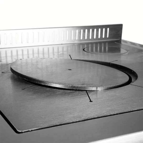 Greithwalds Tyrola-Serie überzeugt auch durch ihre Flexibilität. Die 48,7 x 48,7 cm große Herdplatte des Küchenofens Tyrola TR_F 60 kann optional aus 8 mm starkem Stahl oder 4 mm Neo-Ceran bestehen. Der Rauchrohranschluss misst 120 mm im Durchmesser und kann hinten, seitlich oder an der Oberseite angebracht werden. Wählen Sie den Rauchrohranschluss oben, wird bei der Ausführung mit Glaskeramik eine minimale Fläche des Kochfeldes für den Anschluss in Form eines Stahlstutzens beansprucht. Der Edelstahlkranz mit rückwärtiger Abschlussleiste, dem sog. Plattenwinkel, dient als Spritzschutz. Bei Bedarf ist hierfür eine passende Erweiterung zu erstehen. An der Vorderseite ist eine hitzeisolierte Herdstange montiert. Integrierte Brandschutzeinheiten auf der rechten und linken Seite machen den unkomplizierten Einbau in Ihre Einbauküche möglich.