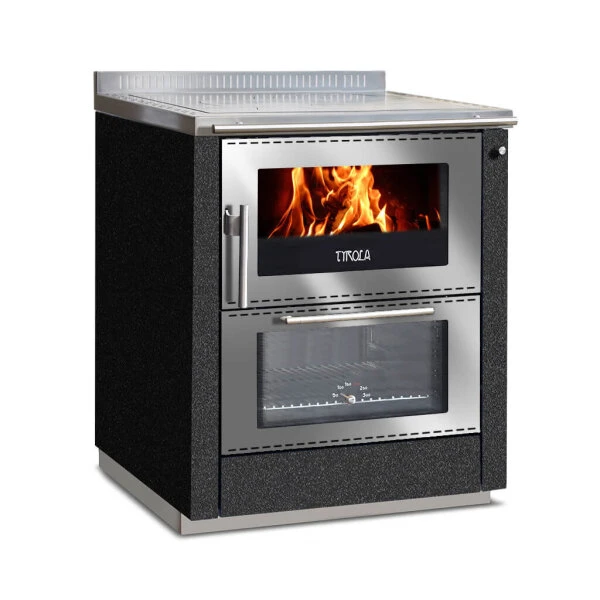 Der Küchenofen Tyrola TR_F 80D verfügt über ein großzügig gestaltetes Backrohr aus Edelstahl. Dieses bietet viel Platz für die Zubereitung Ihrer Speisen. Die Tür zum Backrohr ist mit einer doppelt verglasten Sichtscheibe mit Thermometer ausgestattet. Im Lieferumfang sind ein passendes Backblech sowie ein Backrost aus Edelstahl enthalten, um gleich loslegen zu können.