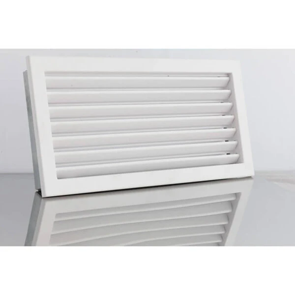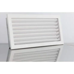 Lüftungsgitter können an vielen Stellen eingesetzt werden, etwa zur Wohnbereichsentlüftung oder zur Verteilung der Wärme des Kamins. Vor allem im Wohnbereich sollte das Lüftungsgitter zum Einrichtungsstil passen und sich harmonisch in das Gesamtbild einfügen. Daher ist dieses Lüftungsgitter in Weiß erhältlich und macht sich im Bad genauso gut wie im Wohnzimmer. Die Lamellen sind feststehend und schräg angesetzt, sodass der Blick nicht von der hinter dem Gitter liegenden Öffnung gestört wird. Die Lamellen sind wie der Rahmen einzeln matt pulverbeschichtet.