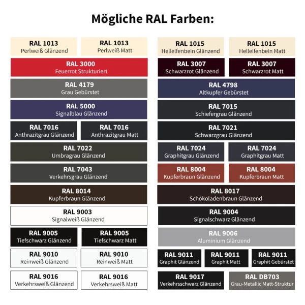 | Oberfläche | RAL Farbe |