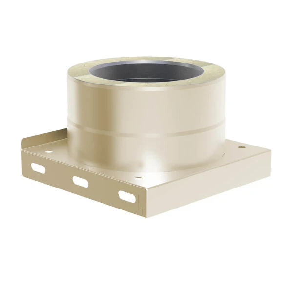 Die Jeremias DW Vision Grundplatte Wandmontage mit Kondensatablauf unten wird am unteren Ende des Schornsteinsystems angebracht und bildet somit den Abschluss. Die Grundplatte besteht aus witterungsresistentem Edelstahl mit einer Wandstärke von 0,6 mm und einer 32,5 mm Dämmung. Durch den seitlichen Kondensatablauf kann das Kondensat problemlos entweichen. Die Jeremias DW Vision Grundplatte kann passend für die Schornsteininnendurchmesser 130, 150,180, 200, 250 sowie 300 mm bestellt werden.