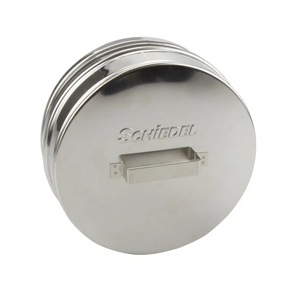 Der ICS Verschlussdeckel wird von Schiedel aus witterungsbeständigem Edelstahl produziert. Er dient dazu, die T-Stücke von Rauchrohranschlüssen des Abgassystems ICS dicht zu verschließen. Dies ist beispielsweise von Nöten, falls zu einem späteren Zeitpunkt ein Rauchrohr angeschlossen werden soll. Der Verschlussdeckel kann mit seinem Griff problemlos bei Bedarf entfernt werden. Er ist erhältlich in den Innendurchmessern 80 / 100 / 130 / 150 / 180 / 200 / 230 / 250 / 300 mm.