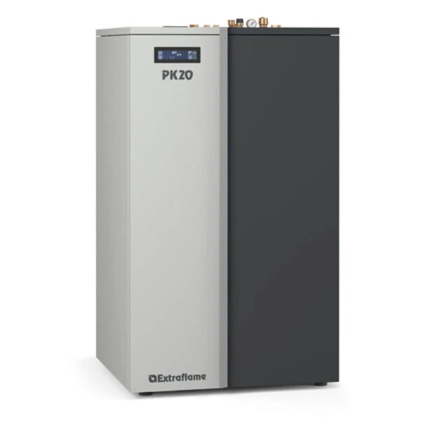 Der Pelletkessel Extraflame PK 20 ist ein leistungsstarker Pelletheizkessel, der problemlos an Ihre bestehende Heizanlage sowie an die Brauchwassererwärmung angeschlossen werden kann. Mit einer Nennwärmeleistung von 5,7 – 20 kW versorgt der Kessel die Fußbodenheizung und die Heizkörper mit warmem Heizungswasser. Der Pelletspeicher verfügt über ein Fassungsvermögen von 75 kg. Der Verbrauch von Brennmaterial liegt bei sparsamen 4,6 kg Holzpellets pro Stunde. Der effiziente Betrieb liegt dabei klar im Fokus. Die Praktikabilität im Alltag ist zudem durch die umfangreiche Programmierung und wirklich einfache Steuerung sehr hoch. Mithilfe von Chromothermostaten kann die Temperatur aller Räume eingestellt und in vier Tagesabschnitte unterteilt werden. Über den praktischen Black-Mask-Screen erfolgt die selbsterklärende Bedienung Ihrer Heizung. Der Rauchgasabgang kann links oder hinten angebracht werden. Die Befüllung erfolgt ganz bequem von vorn.