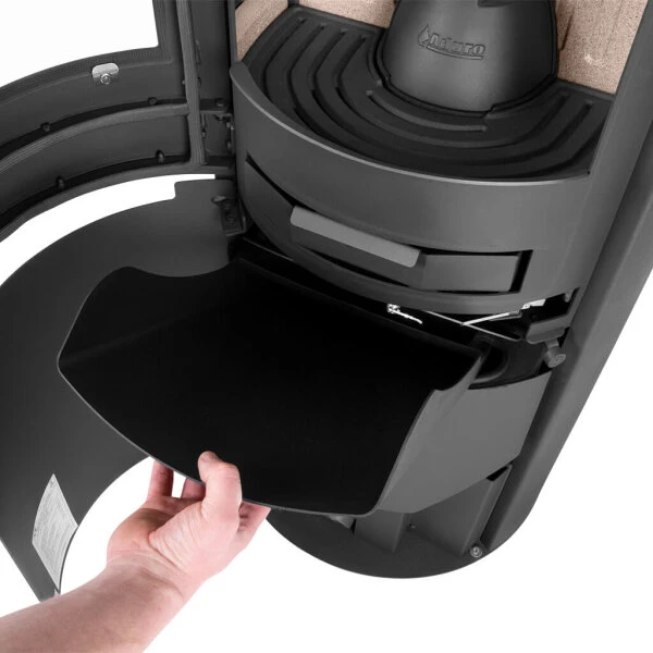 6,8 kW Nennwärmeleistung in einem Betriebsbereich von 3-8 kW erbringt der Peletofen Aduro P5 Lux. Der Reinigungsprozess wird hinausgezögert und erleichtert, dank der eingebauten Scheibenspülung, die die Sichtscheiben von Ruß freihält. Zudem sammelt der Brennkegel Staub und Schlacke.