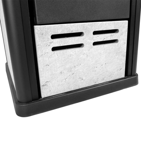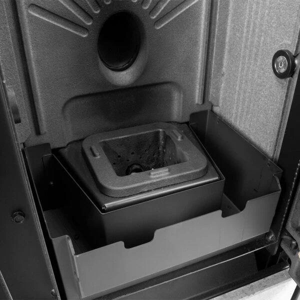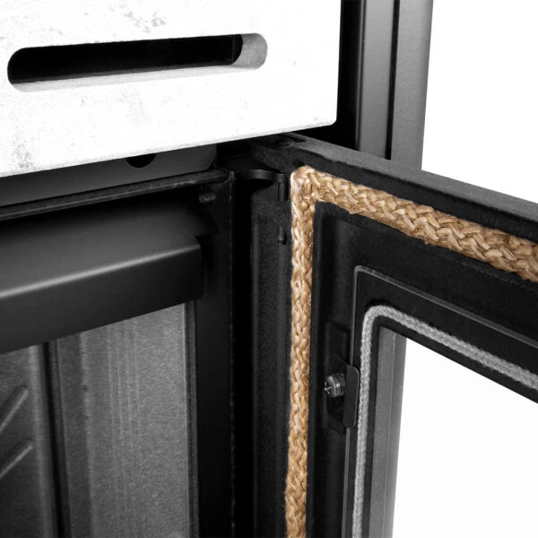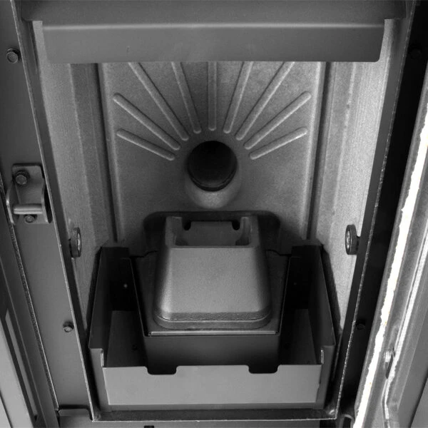 Ein weiterer Vorteil ist der Innenraum aus Gusseisen. Das Material ist widerstandsfähig gegenüber hohen Temperaturen und speichert Wärme, welche nach dem Abbrand wieder an den Aufstellraum abgegeben wird. Diese Eigenschaft hat auch die Außenverkleidung aus Majolika in Bordeaux oder Weiß, alternativ Naturstein. Zur Erleichterung der Reinigung sind Aschekasten und gusseiserner Feuerraum ausziehbar.