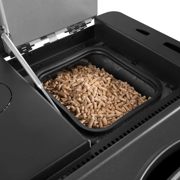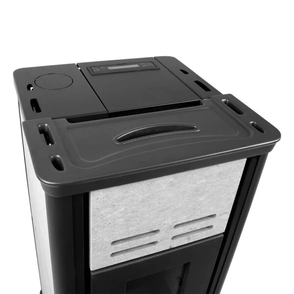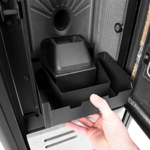 Der Serafina Lux Evo wird mit Holzpellets betrieben. Diese werden aus Holzresten und Sägemehl gefertigt, welche unter hohem Druck zusammengepresst und durch den Holzinhaltsstoff Lignin zusammengehalten werden. Die Pellets werden per Hand in einen Tank gegeben, welcher über ein Fassungsvermögen von 15 kg verfügt. Die konstante Beschickung des Brennraumes mit Pellets über eine Förderschnecke verläuft hingegen automatisch.