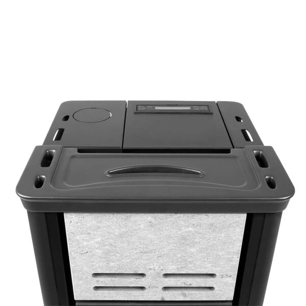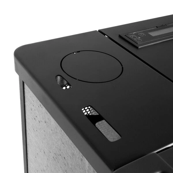 Der La Nordica Serafina Lux Evo ist mit mehreren Thermostaten versehen, die Innenraum und Umgebung überprüfen, das Abbrandverhalten dementsprechend anpassen und den Ofen gleichzeitig vor Überhitzung bewahren. Der integrierte Lüfter sorgt für eine gleichmäßige Wärmeverteilung im Raum.