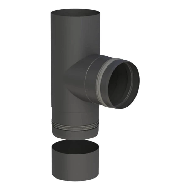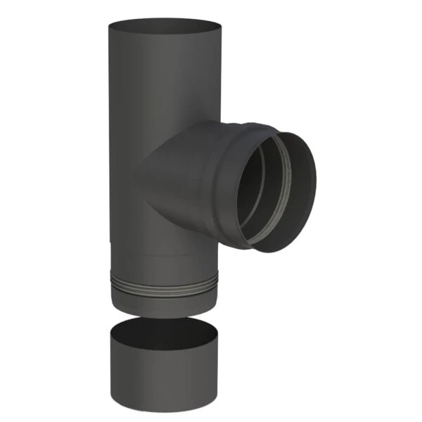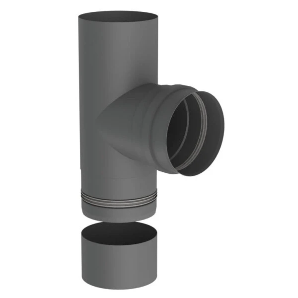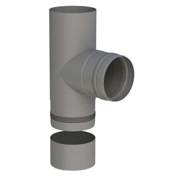 Anpassbares Pelletofenrohr T-Stück 90° mit Kondensatschale