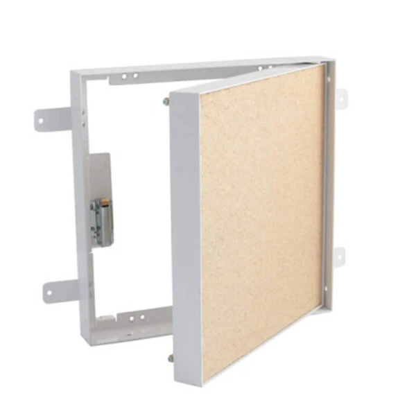 Die Revisionstür Click ist mit einer 30 mm starken Vermiculite-Dämmplatte versehen. Dank dieser kann die Tür einfach mit überputzt werden. Öffnen und Schließen der Tür erfolgen lediglich per Fingerdruck und ohne sichtbaren Verschluss. Dadurch ist ein nahezu unsichtbares Einbauen der Tür möglich.