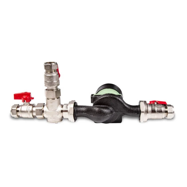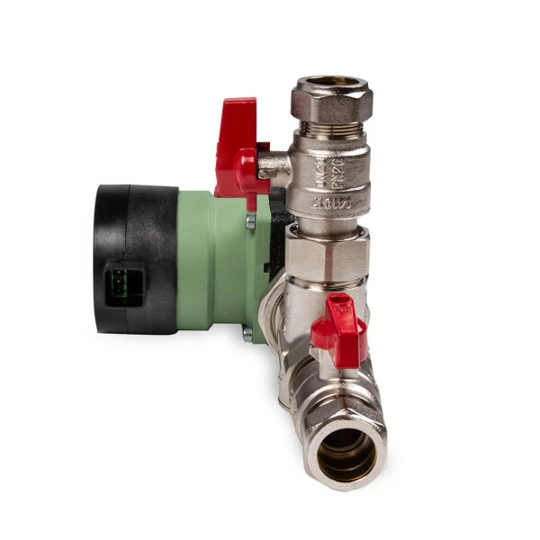 Die Rücklaufanhebungsgruppe Laddomat 11-30 Effizienzpumpe beinhaltet ein thermo-regulierendes Ventil, die Perfecta Zirkulationspumpe und Kugelhahn. Bei einer Wassertemperatur von 63°C im Kessel öffnet das thermische Regelventil den Zufluss zum Heizungssystem bzw. Pufferspeicher.