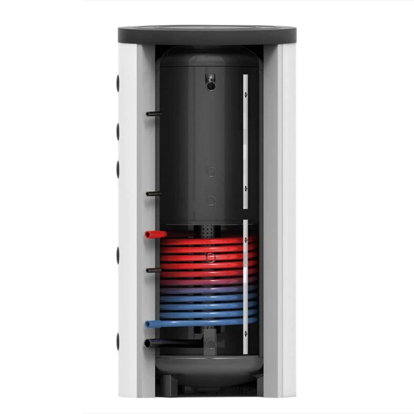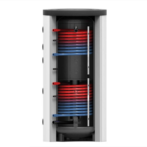 Da die Entladung immer in der Schicht mit dem passenden Temperaturniveau erfolgt, kann die gespeicherte Wärme stets optimal genutzt werden, ohne in Mischungsprozessen verloren zu gehen. Diese Bauweise eignet sich vor allem auch für die Verwendung mit einer Wärmepumpe, da das erhitzte Wasser gezielt im oberen Teil eingeschichtet werden kann.