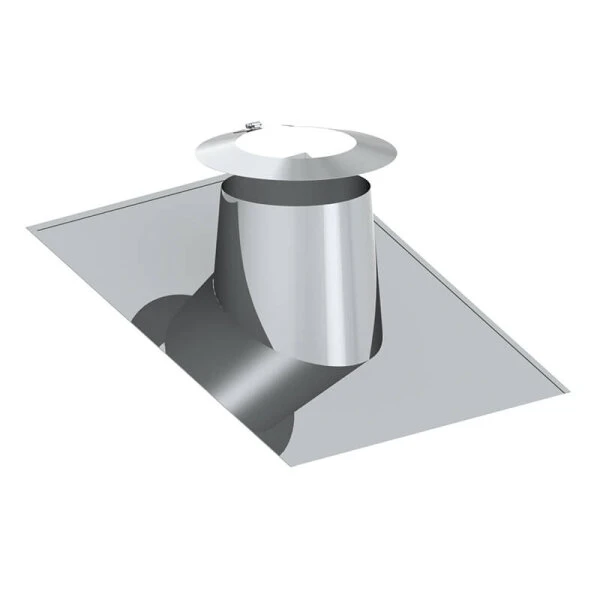 Diese Dachdurchführung benötigen Sie sobald Sie Ihren Edelstahlschornstein durch ein Flachdach mit 16-25° Winkel durchführen möchten. Die Dachdurchführung besteht komplett aus Edelstahl und deckt mit seinem Umfang das Loch durch das Sie den Schornstein führen ab. Zusätzlich benötigen Sie den Regenkragen mit dem Sie das System vollenden und die Durchführung gegen das Eindringen von Regenwasser schützen.
