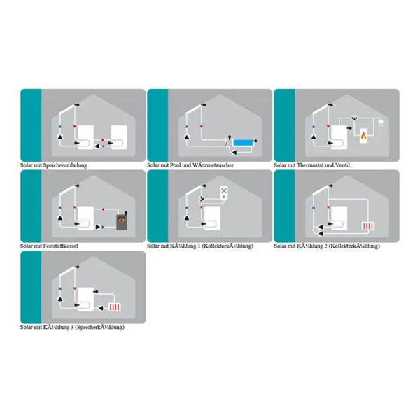 Mit dem optional erhältlichen Datalogger erweitern Sie diesen Regler um eine Ethernetschnittstelle und Sie können somit die Parameter Ihrer Anlage zu jederzeit über das Internet einsehen und ändern. Bei Stromausfall sorgt eine interne Batterie dafür, dass alle Einstellungen und Statistiken für mindestens 24 Stunden erhalten bleiben. Außerdem verfügt die Steuerung über 18 verschiedene Sprachen.
