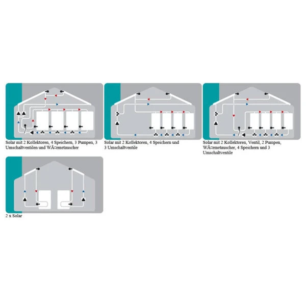 - Solaranlage mit 2 Feldern und Umschaltventil, sowie 2 Pufferspeicher mit Umschaltung