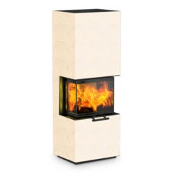 Anders als klassische Kamine, ist ein Tunnelkamin mit gleich zwei gegenüberliegenden Sichtscheiben ausgestattet. Dadurch haben Sie die Durchsicht und können den Kamin als Raumteiler in zwei Bereichen eine optimale Sicht auf die Flammen genießen. Beide Scheiben sind 51 x 67 cm (H x B) groß. Die Vorderseite ist hochschiebbar. Für eine komfortable Reinigung lässt sich die Rückseite aber ankippen.