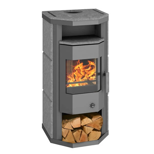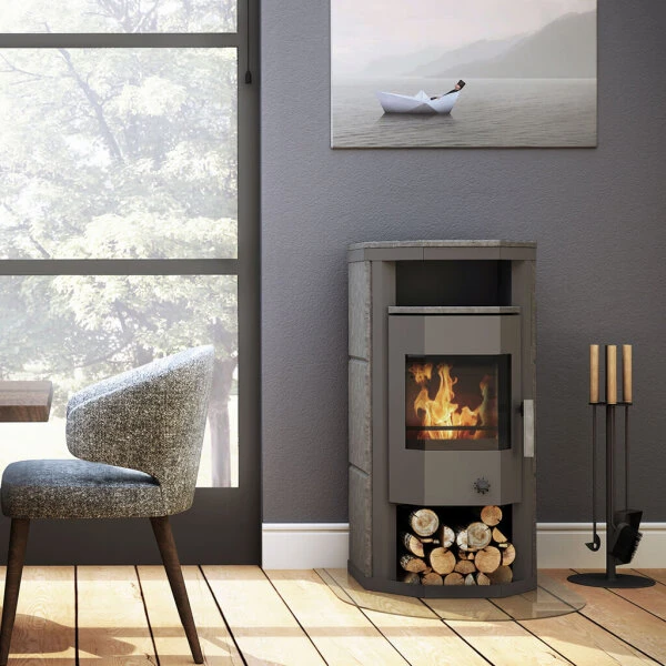 Unter der Brennkammer bietet der Wamsler Thyra genügend Stauraum für Scheitholz. Das Holzlager hat neben seiner praktischen Funktion auch eine optisch ansprechende Seite und verleiht dem Kamin eine gemütliche Note. Über der Brennkammer befindet sich ein nützliches Warmhaltefach, mit dem sich Heißgetränke auf dem warmen Speckstein über lange Zeit auf Temperatur halten lassen.